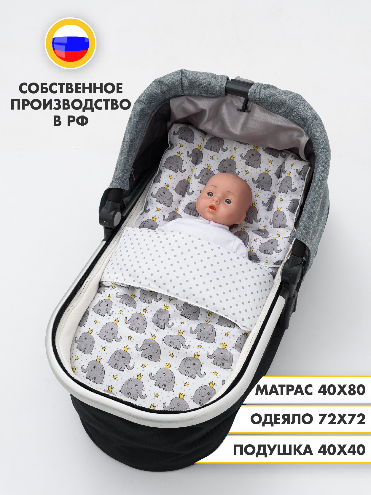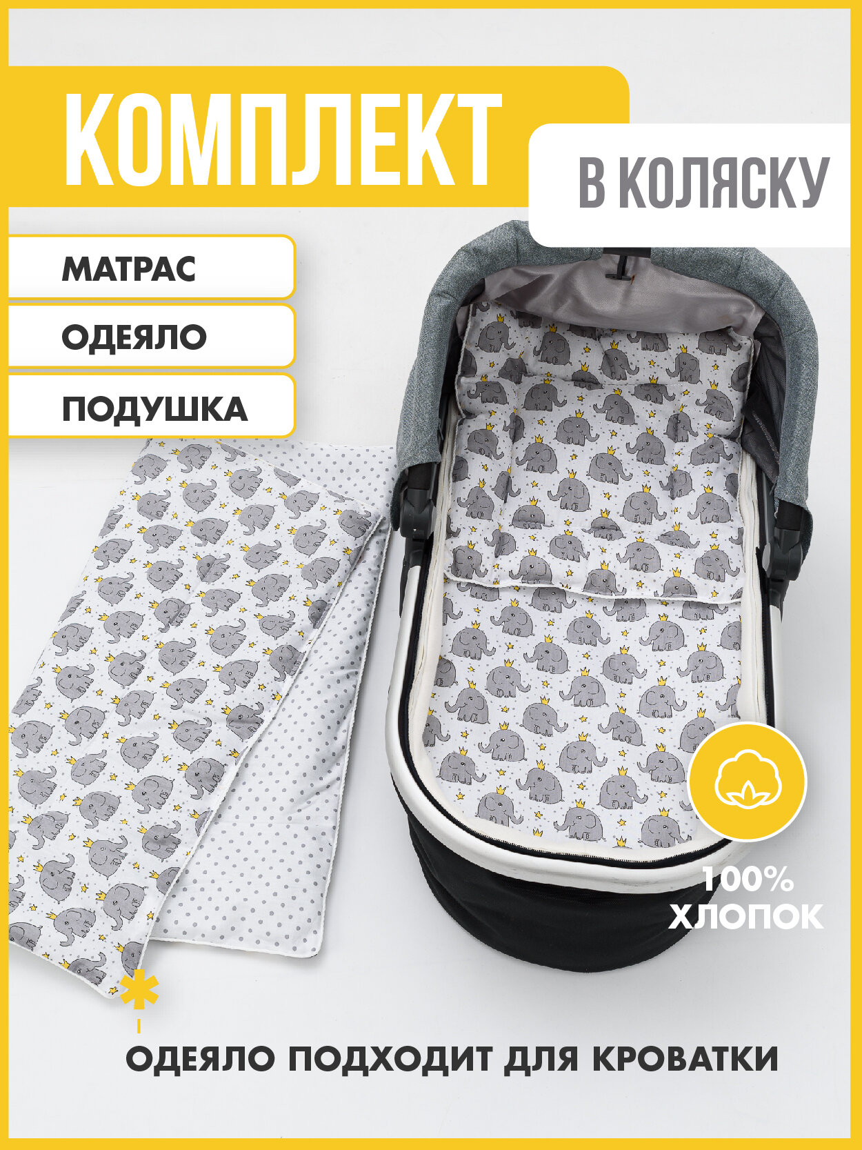 Набор аксессуаров "Мой Ангелочек", для коляски, хлопок 100%, слоники информация: