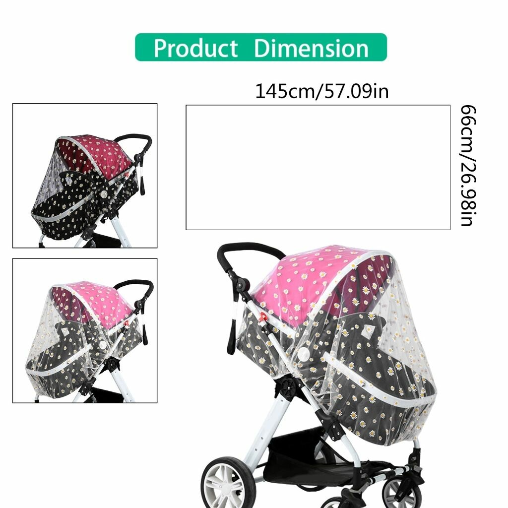 Отзывы на Аксессуары для колясок, Коляска с вышивкой ромашек и москитной сеткой - черные мелкие ромашки