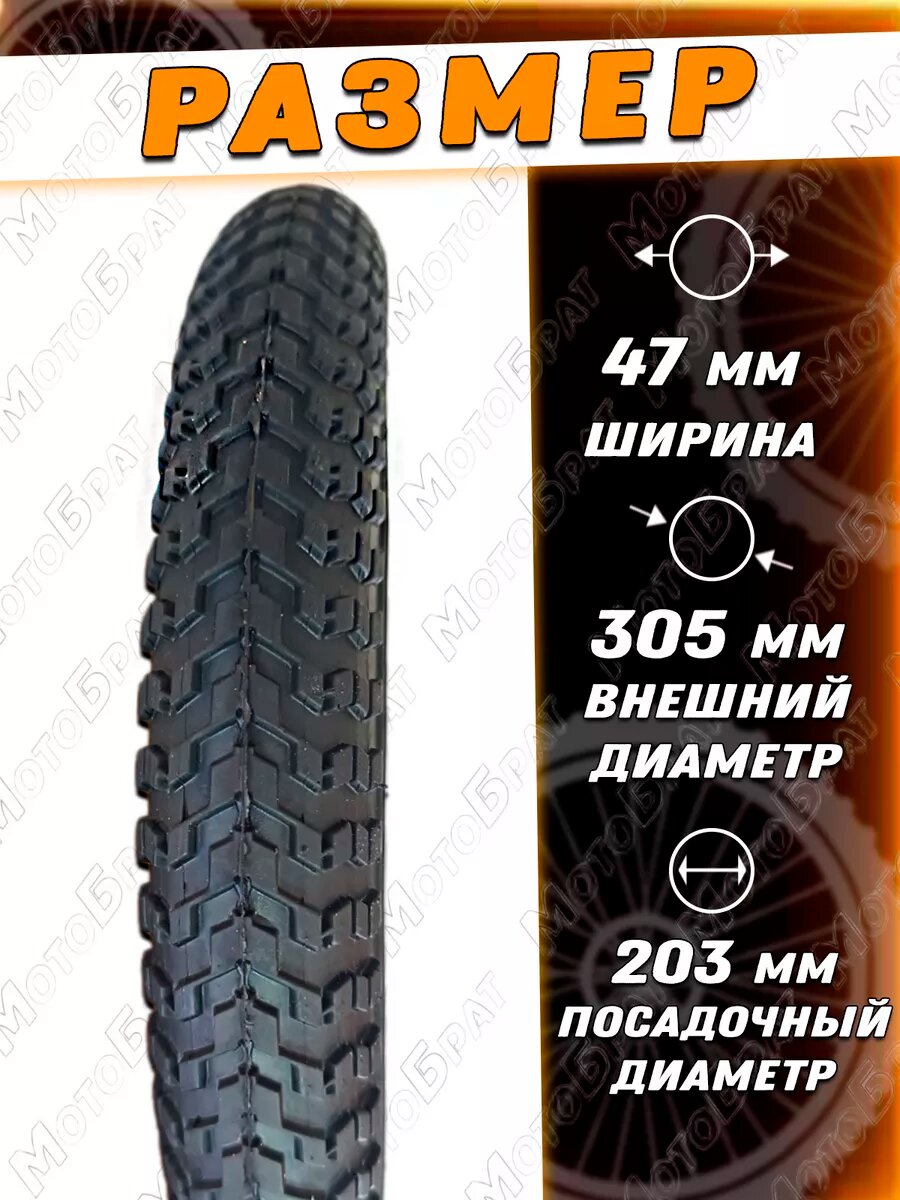 Велопокрышка 12" 47-203 (12 1/2х1.75х2 1/4) (протектор) информация: