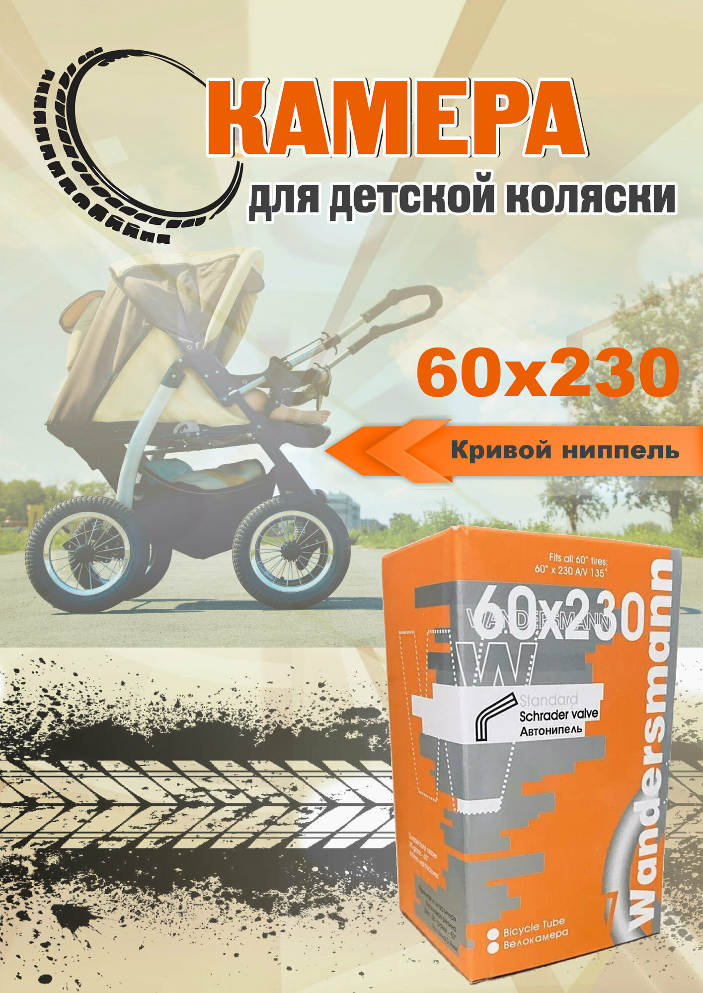 Камера 60х230 для детской коляски, кривой ниппель информация: