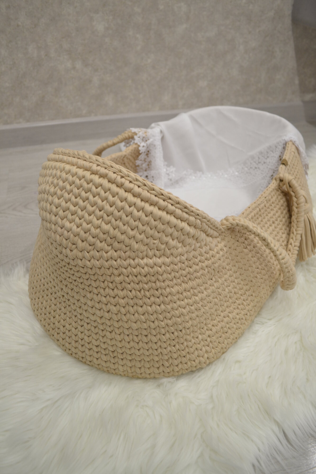 Люлька - переноска вязаная, корзина для новорожденного, колыбель информация: