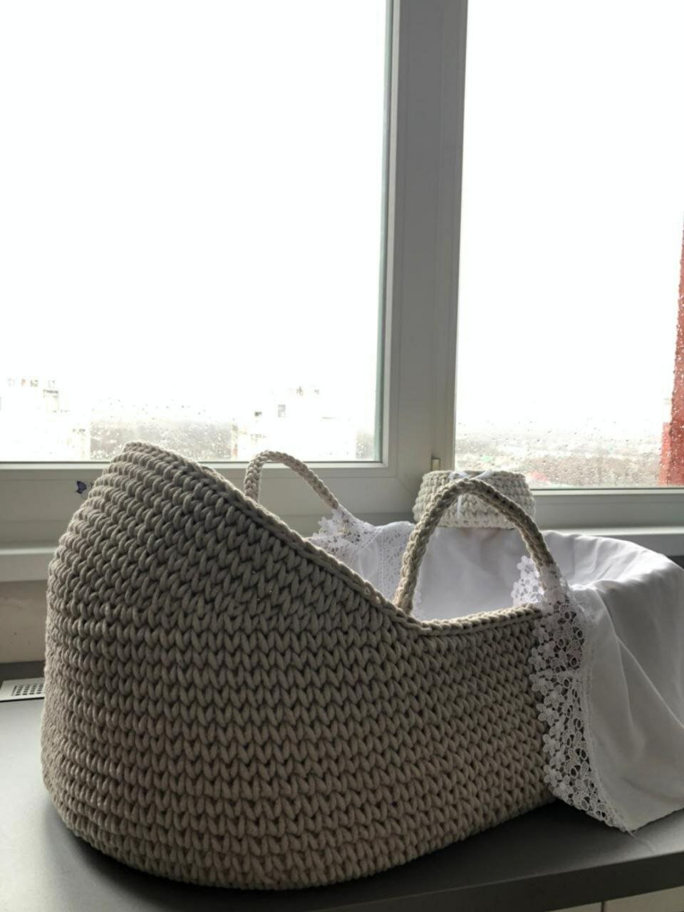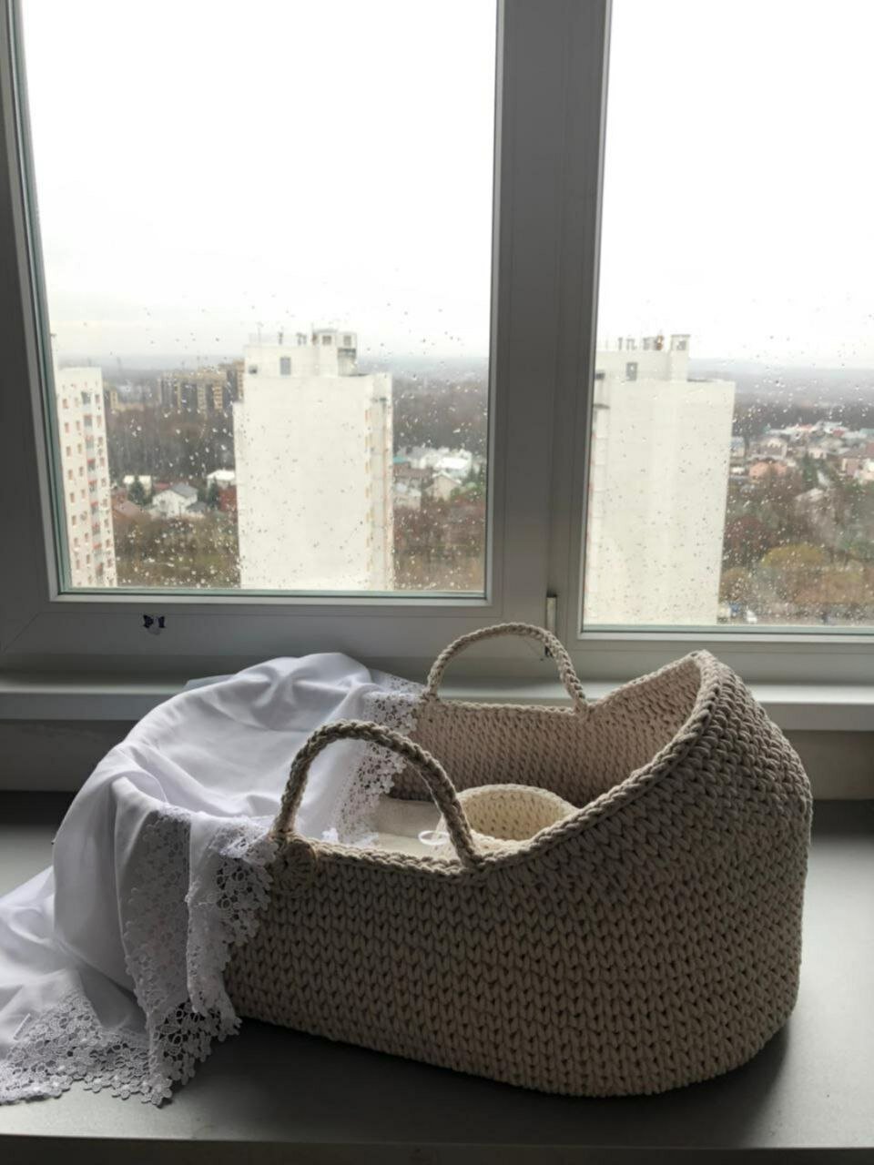 Люлька-переноска, для новорожденных, бежевая, вязаная, с матрасом информация: