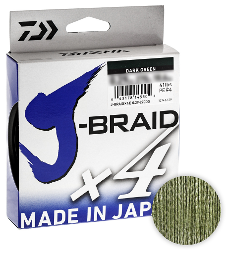Плетеный шнур DAIWA J-Braid X4 d=0.33 мм, 270 м, 22.4 кг, dark green
