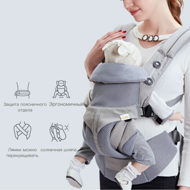 Переноску для ребенка можно использовать как спереди, так и сзади серый информация: