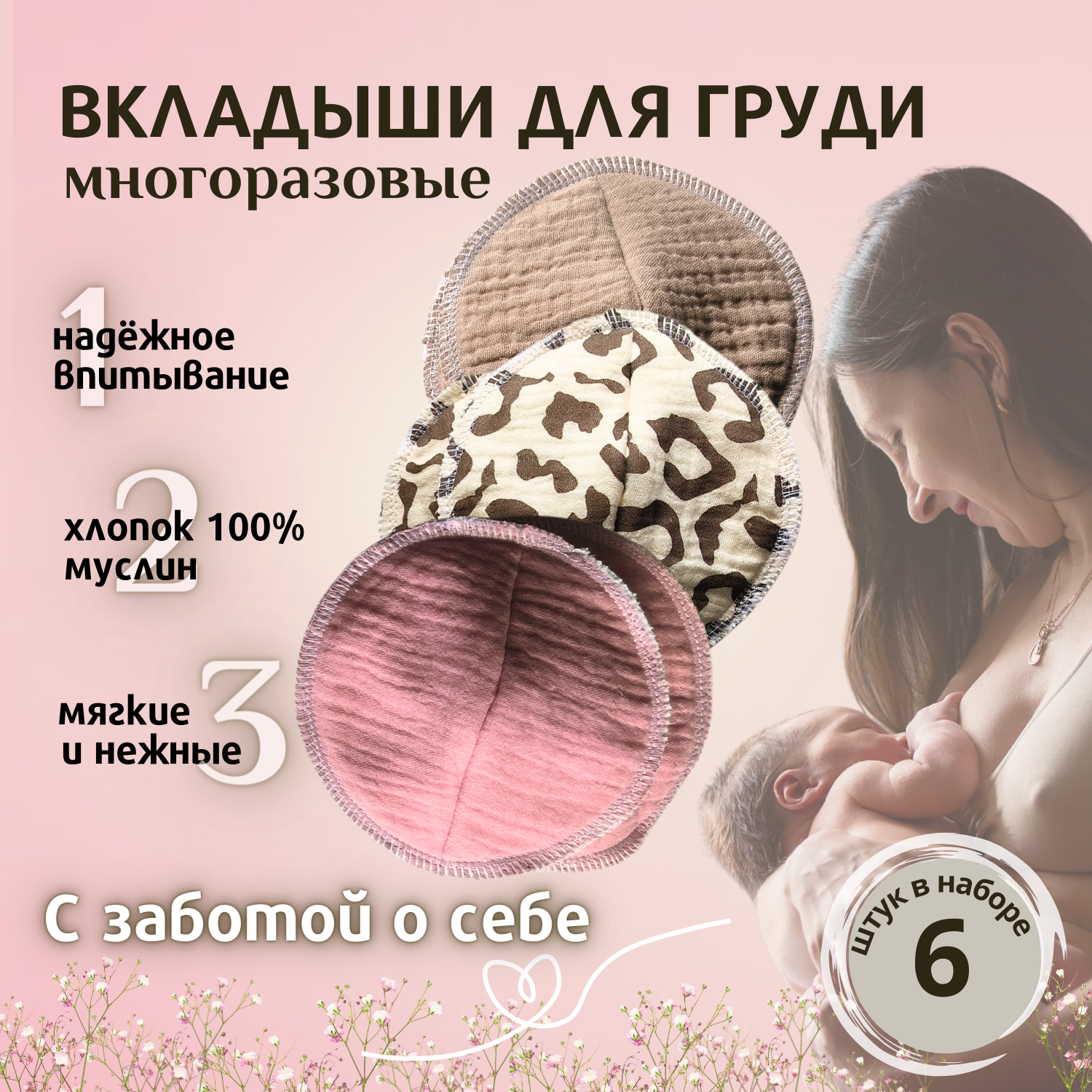 Вкладыши для груди многоразовые 6шт информация: