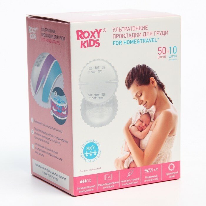 10 цен на Прокладки вкладыши для груди, ультратонкие, лактационные HOME&TRAVEL, набор 60 шт, Roxy-kids