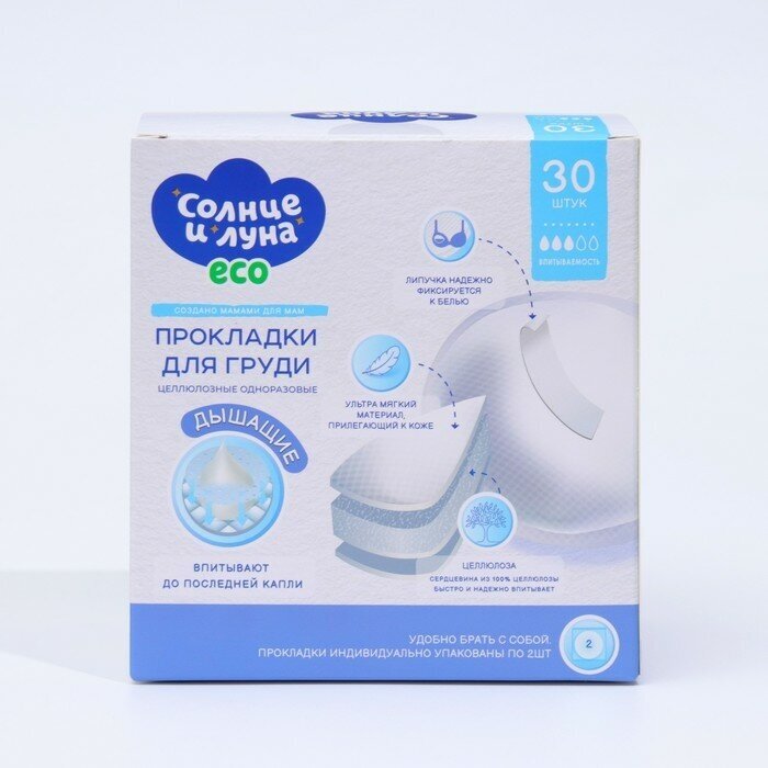 Солнце и луна eco прокладки для груди целлюлозные одноразовые 30 шт. 3уп