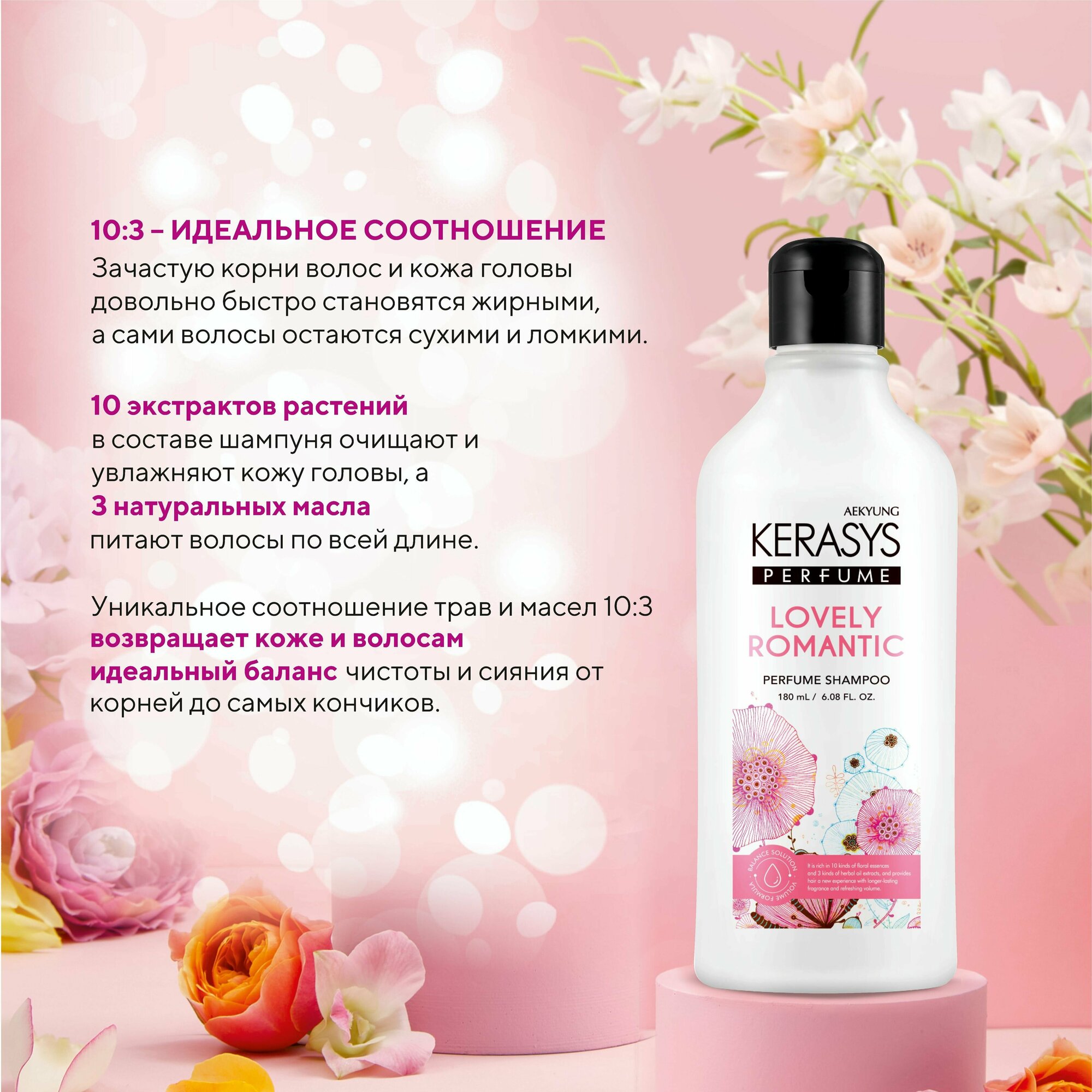 10 цен на Kerasys Профессиональный парфюмированный Корейский Шампунь для поврежденных волос с секущимися концами Романтик 180 мл увлажняющий с гиалуроновой кислотой, , Корея