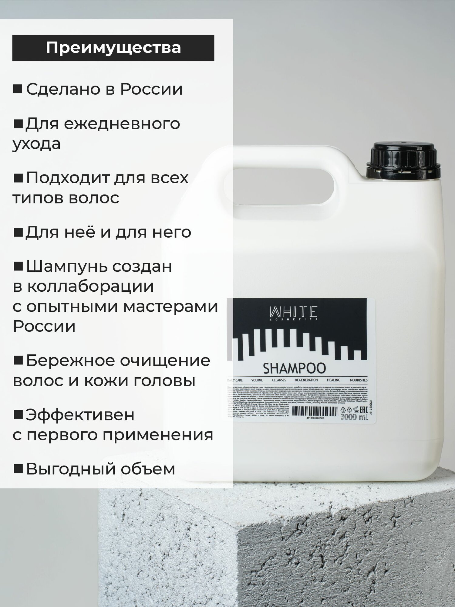 WHITE Профессиональный шампунь для волос смягчение увлажнение объем 3000 мл информация: