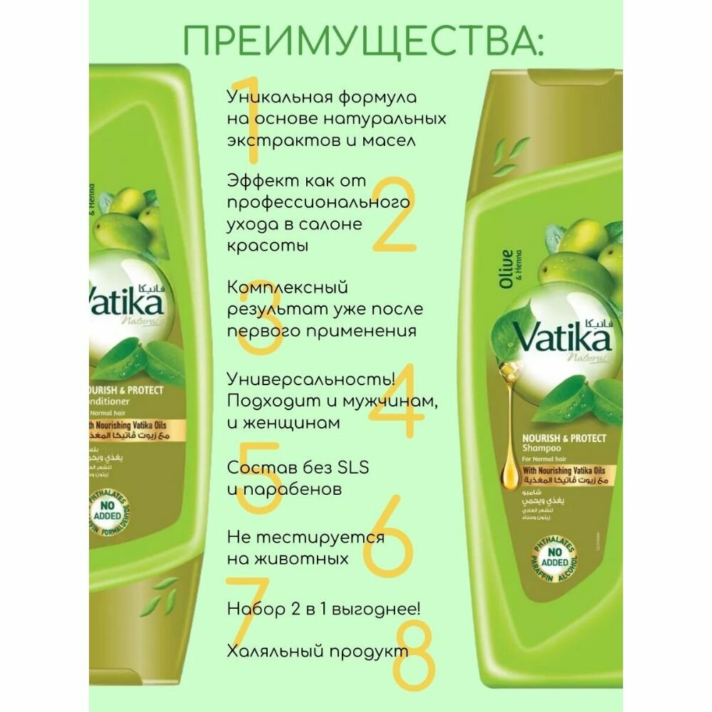 Набор 2 в 1 для волос с оливкой и хной шампунь и кондиционер по 200 мл "Защита и питание" информация: