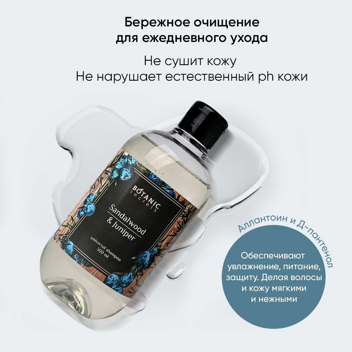 10 цен на Botanic Secrets Шампунь для волос и тела, универсальный, женский и мужской, Сандал и можжевельник, 500 мл