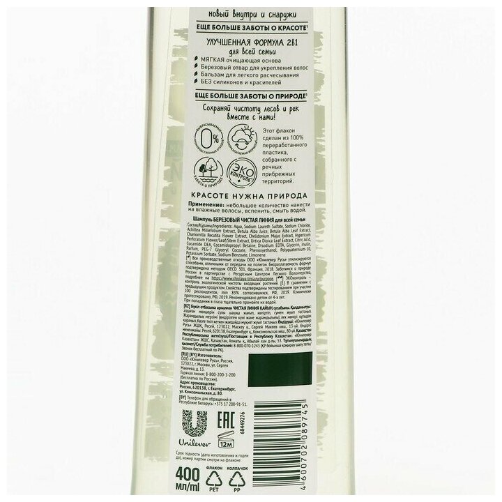 Чистая линия Шампунь Березовый для всей семьи, 400 мл информация:
