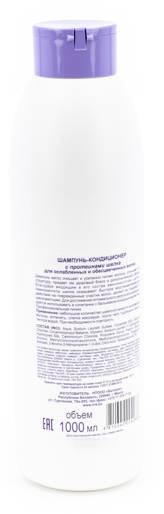 IRIS Шампунь Профессиональная линия №4 для ослабленных и обесцвечнных волос Шелковый блеск с протеинами шёлка, 1 л информация: