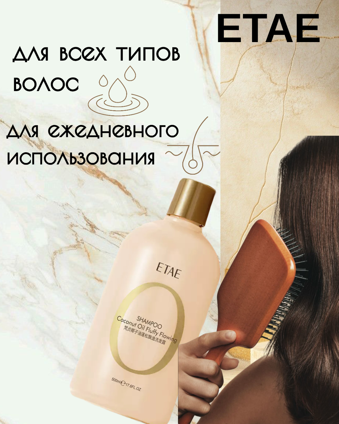 10 цен на Шампунь для волос с кокосовым маслом и витаминами ETAE, для бережного очищения