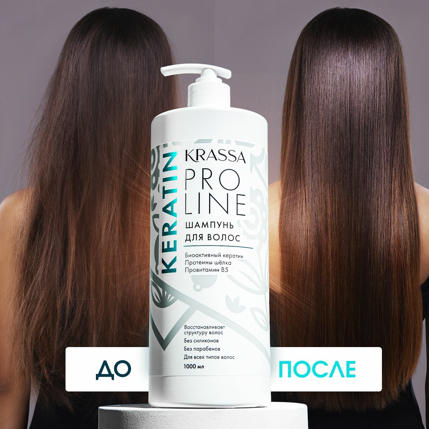 Шампунь для волос женский с кератином Krassa PRO-LINE, 1000мл информация: