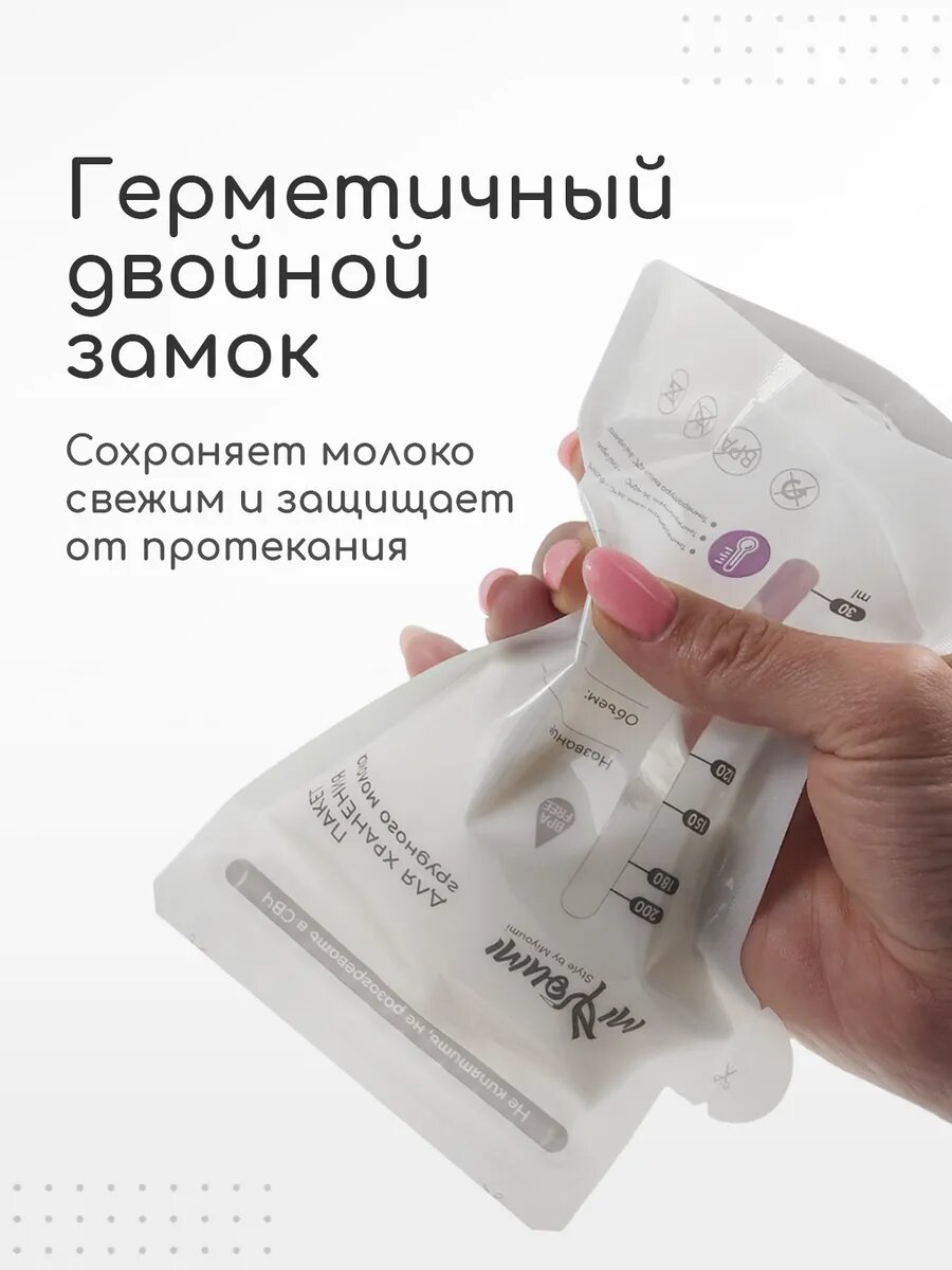 Пакет для хранения грудного молока, гигиеническое двойное уплотнение, охлажденный и замороженный, 180 мл, 100 шт.