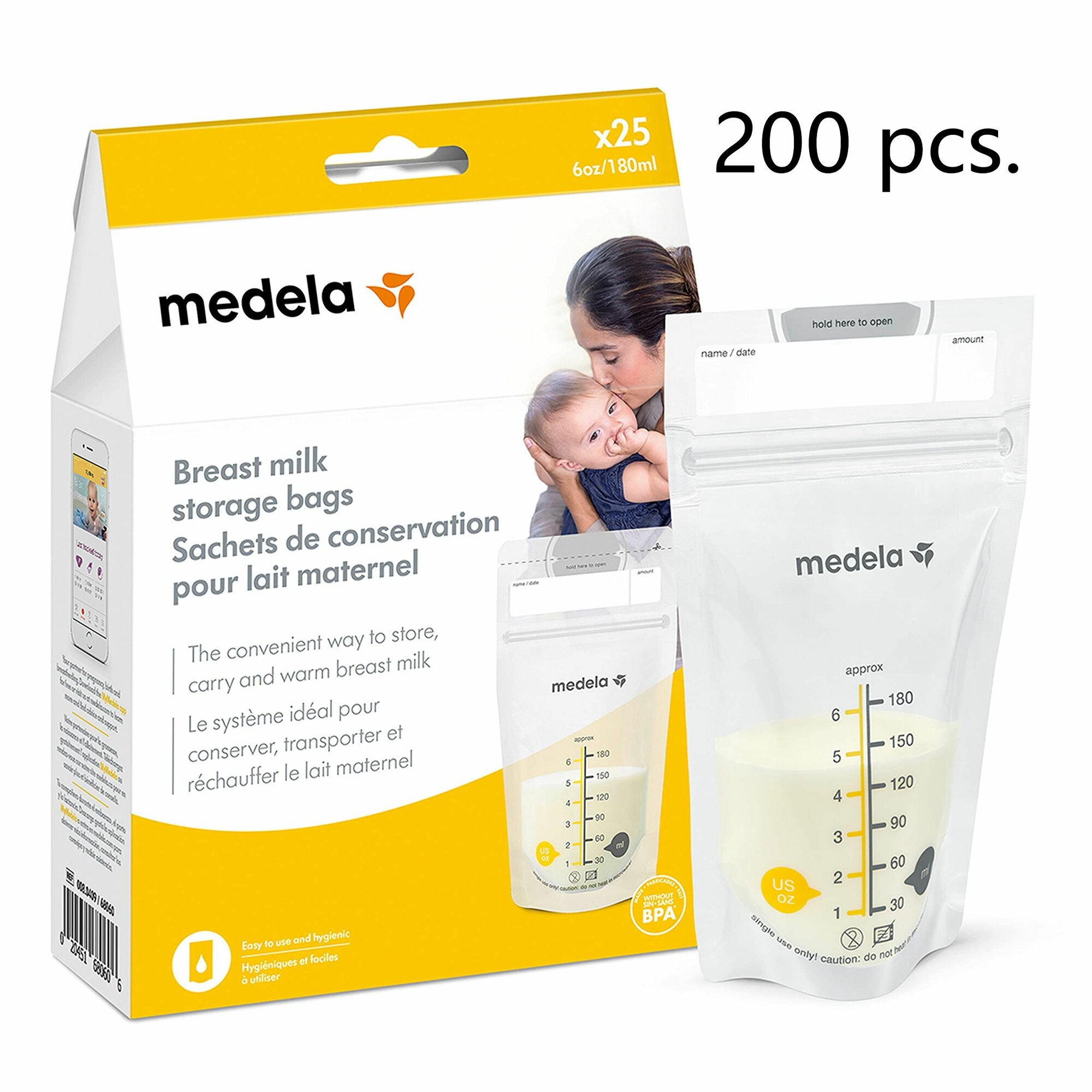Пакет для хранения грудного молока, гигиеническое двойное уплотнение, охлажденный и замороженный, 180 мл, 100 шт.