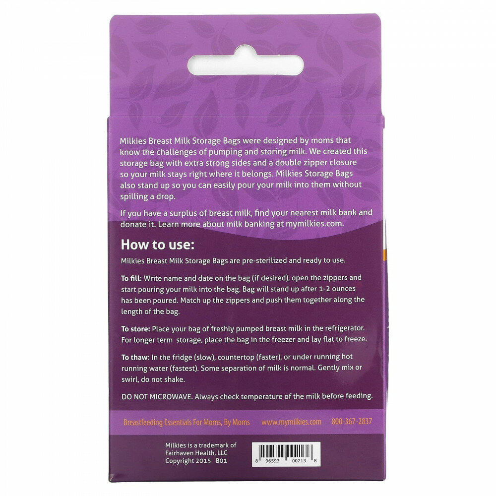 Fairhaven Health, Пакеты для хранения грудного молока, 50 пакетов для хранения информация: