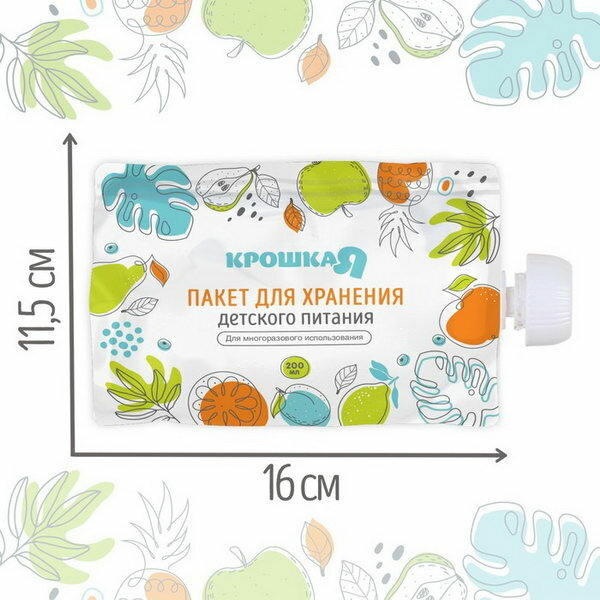 Многоразовые пауч пакеты для детского питания с ложкой, 200 мл, набор 5 шт. информация: