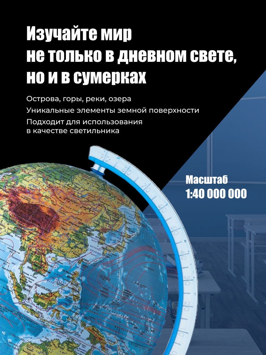 Отзывы на Глобус физико-политический Интерактивный с подсветкой, в комплекте очки виртуальной реальности (VR) диаметр 32 см