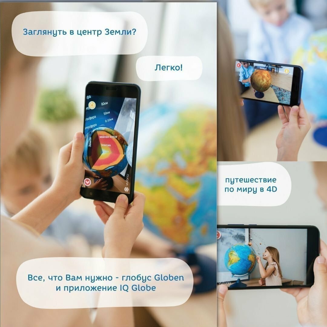 Глобус интерактивный физико-политический с подсветкой d=32 см Globusoff информация: