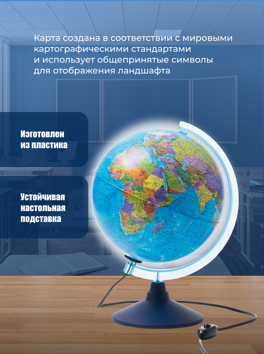 Глобус физико-политический диаметр 25 см, интерактивный с подсветкой, в комплекте очки виртуальной реальности (VR) информация: