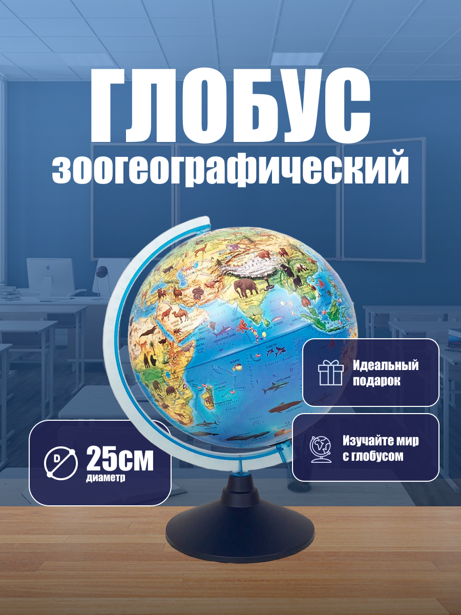 Глобус зоогеографический диаметр 25 см Классик Евро Детский информация: