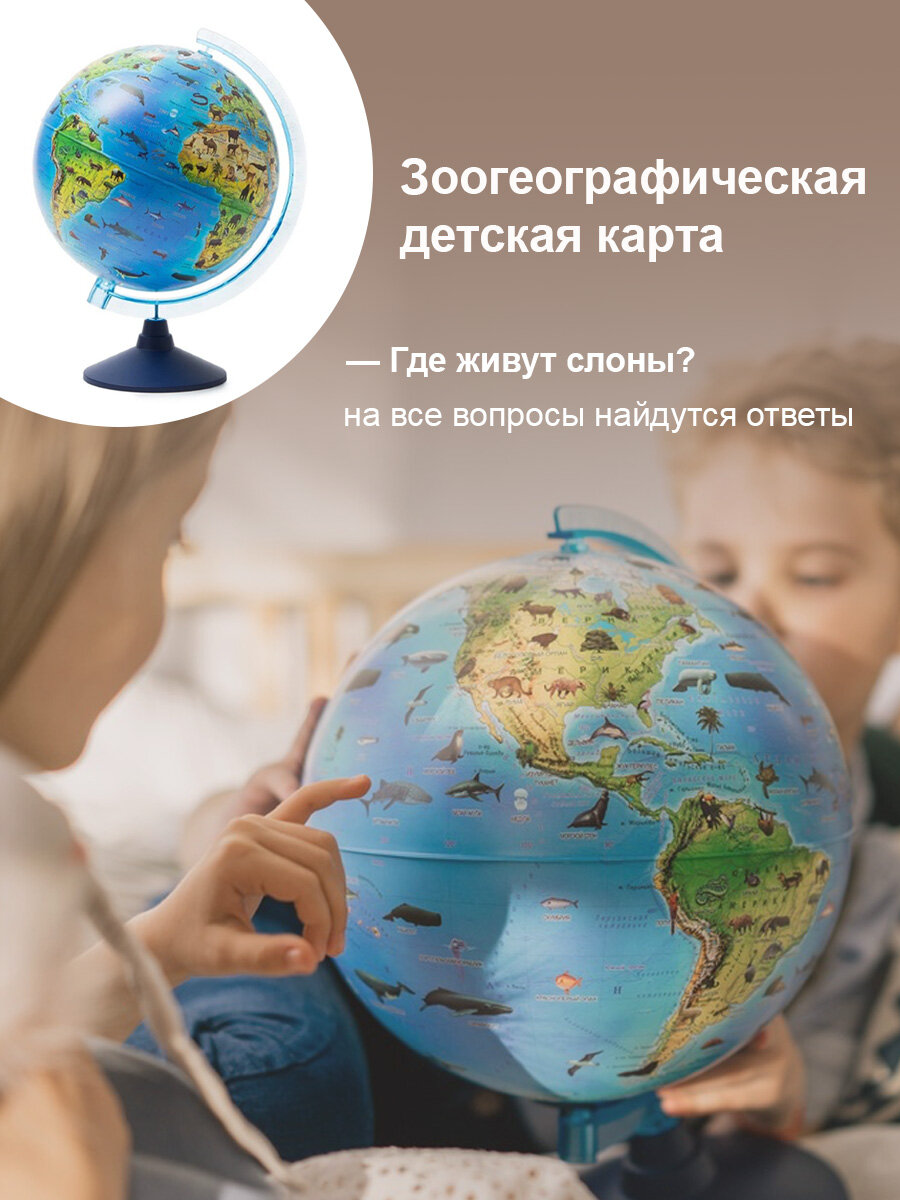 Globen Глобус Земли зоогеографический детский, диаметр 32см. + Развивающий атлас "Мир вокруг тебя" информация:
