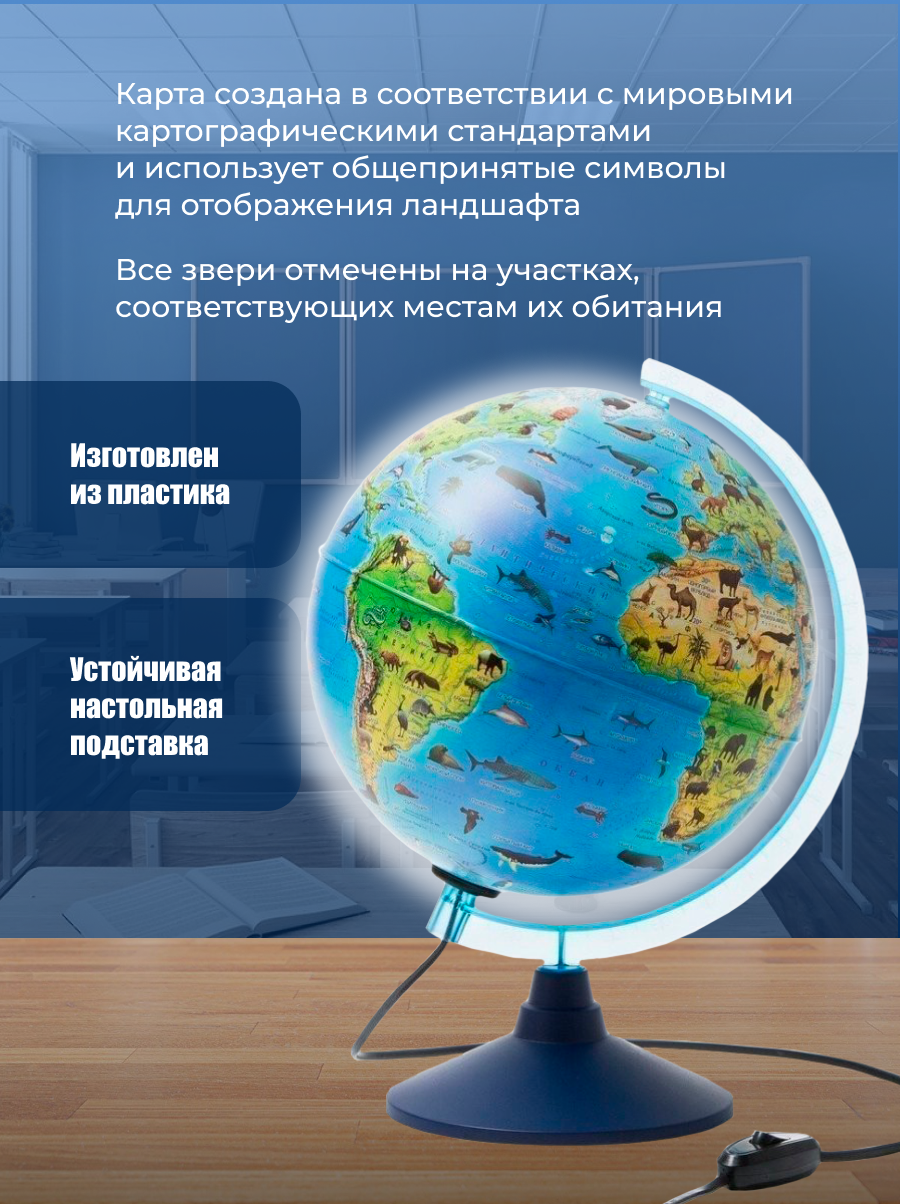 Глобус зоогеографический диаметр 21см Интерактивный Детский, с подсветкой, в комплекте очки виртуальной реальности (VR) информация: