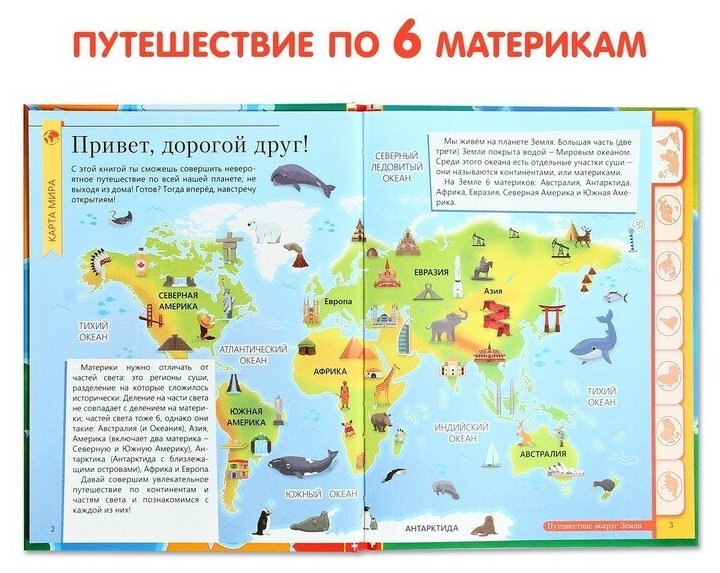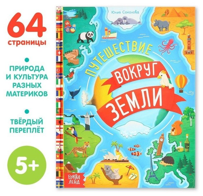 Энциклопедия в твёрдом переплёте "Путешествие вокруг Земли", 64 стр информация: