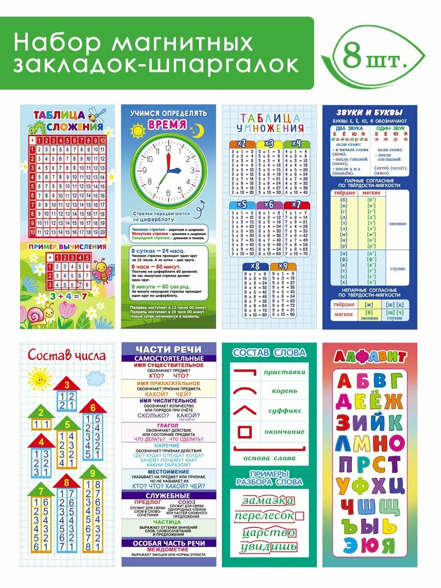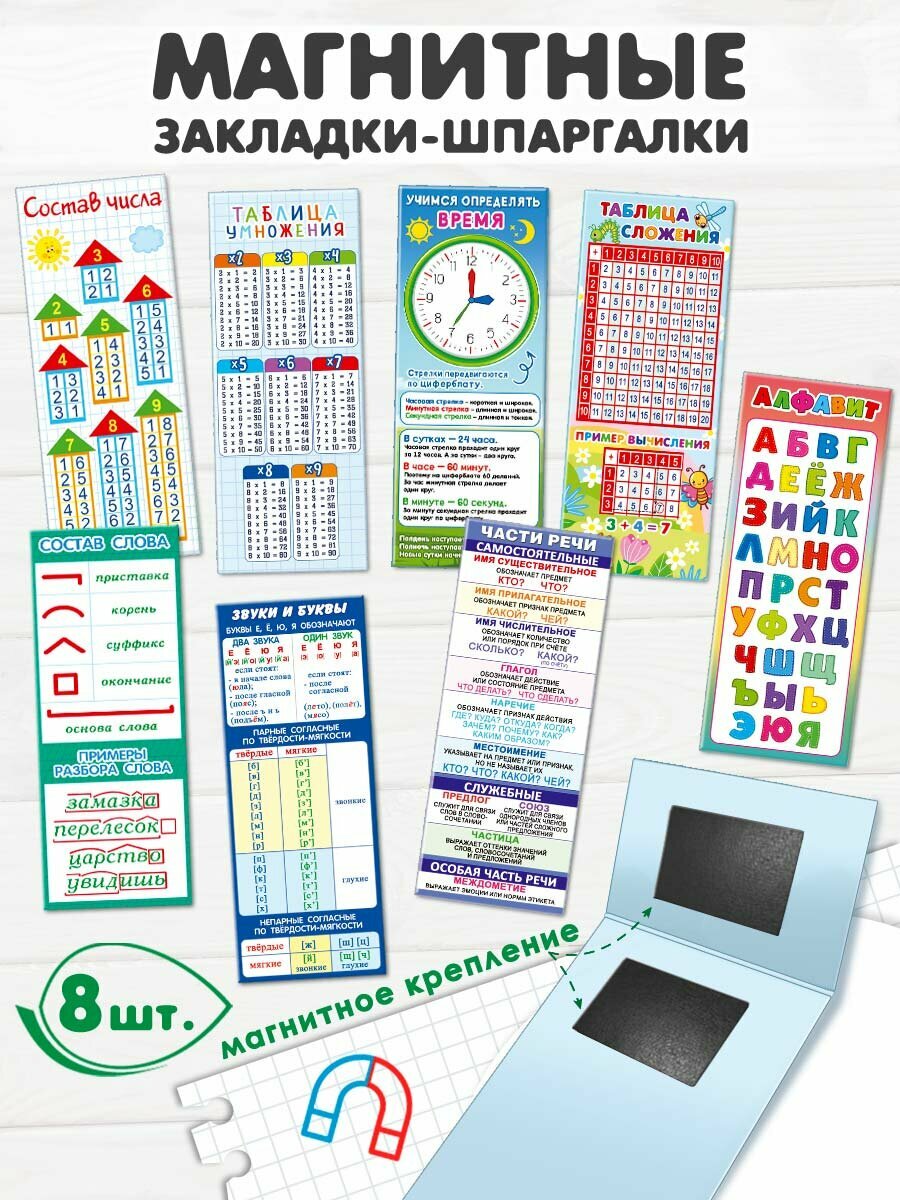 Набор магнитных закладок для книг и учебников, 8 штук информация: