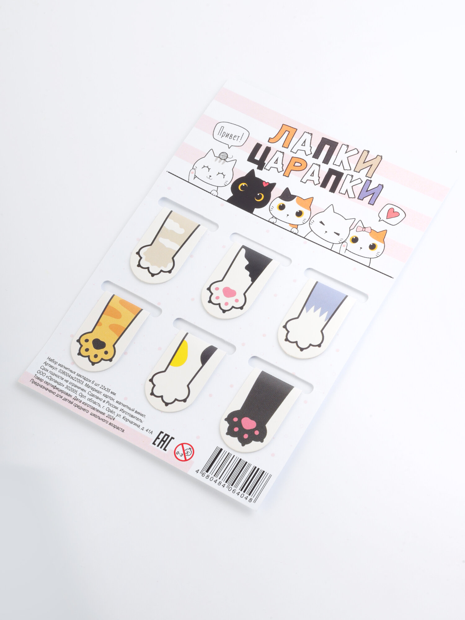 Набор магнитных закладок "Лапочки" (6шт 22х35мм), закладка для книг 286 ₽