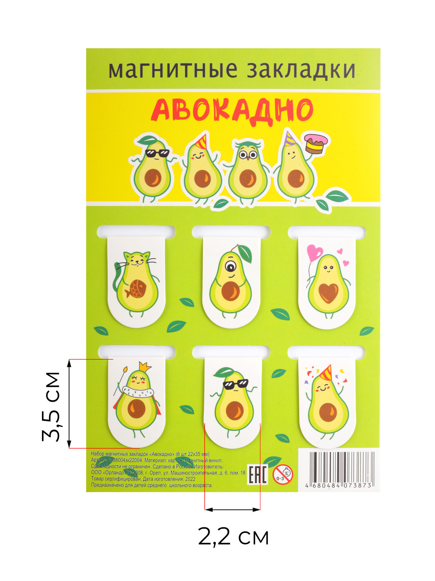 Набор магнитных закладок "Авокадно" (6шт 22х35мм), закладка для книг информация: