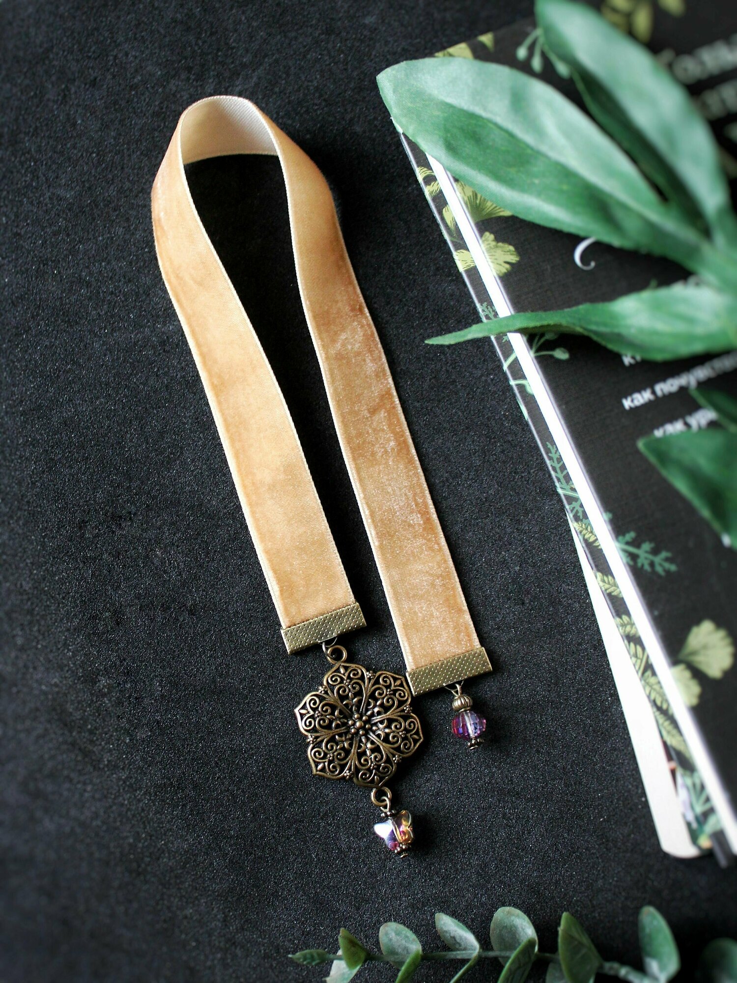 10 цен на Закладка Бархатная лента с цветком для книги, готовый подарок девушке подруге сестре