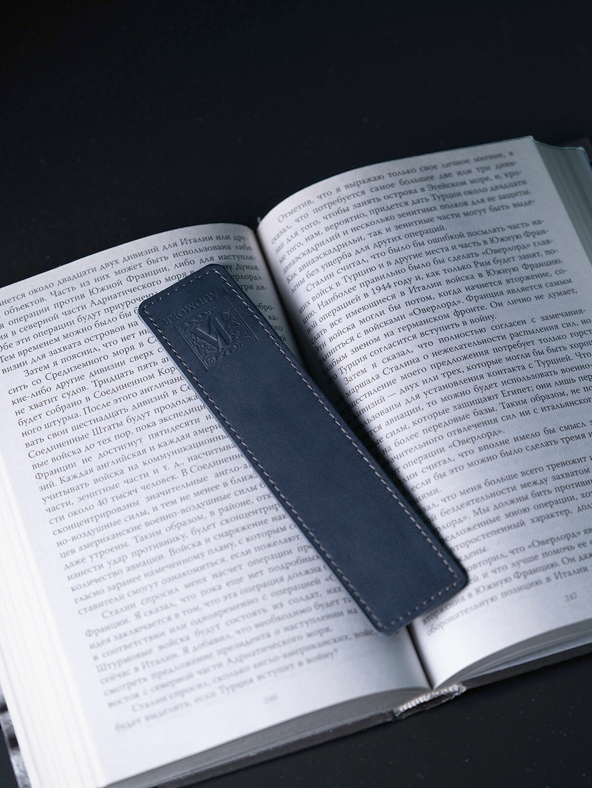 Кожаная закладка для книги, закладка в ежедневник, блокнот, в журнал из натуральной кожи Chirk Navy by J.Audmorr информация: