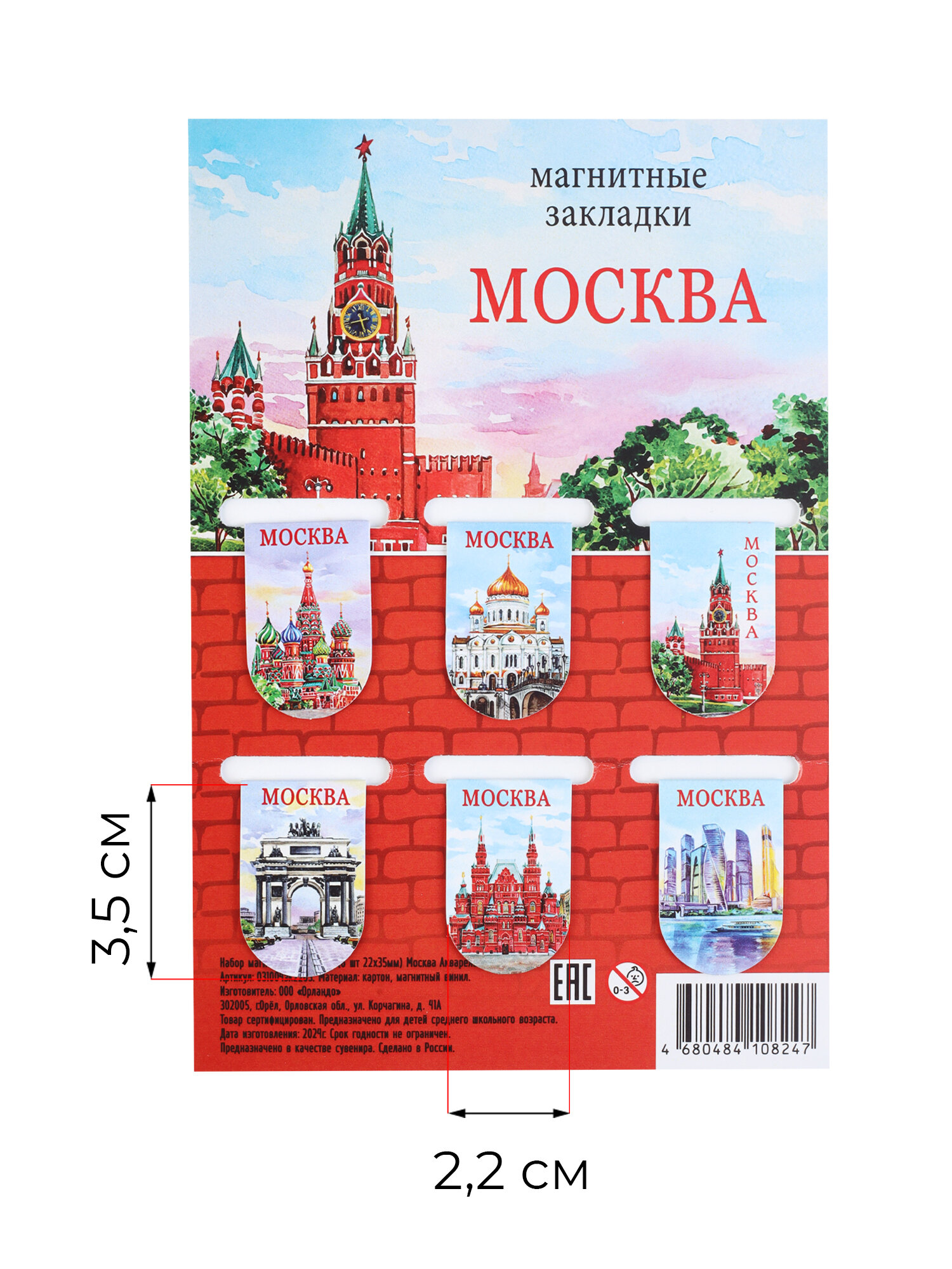Набор магнитных закладок для книг 6 шт. "Москва", 35 х 22 мм информация: