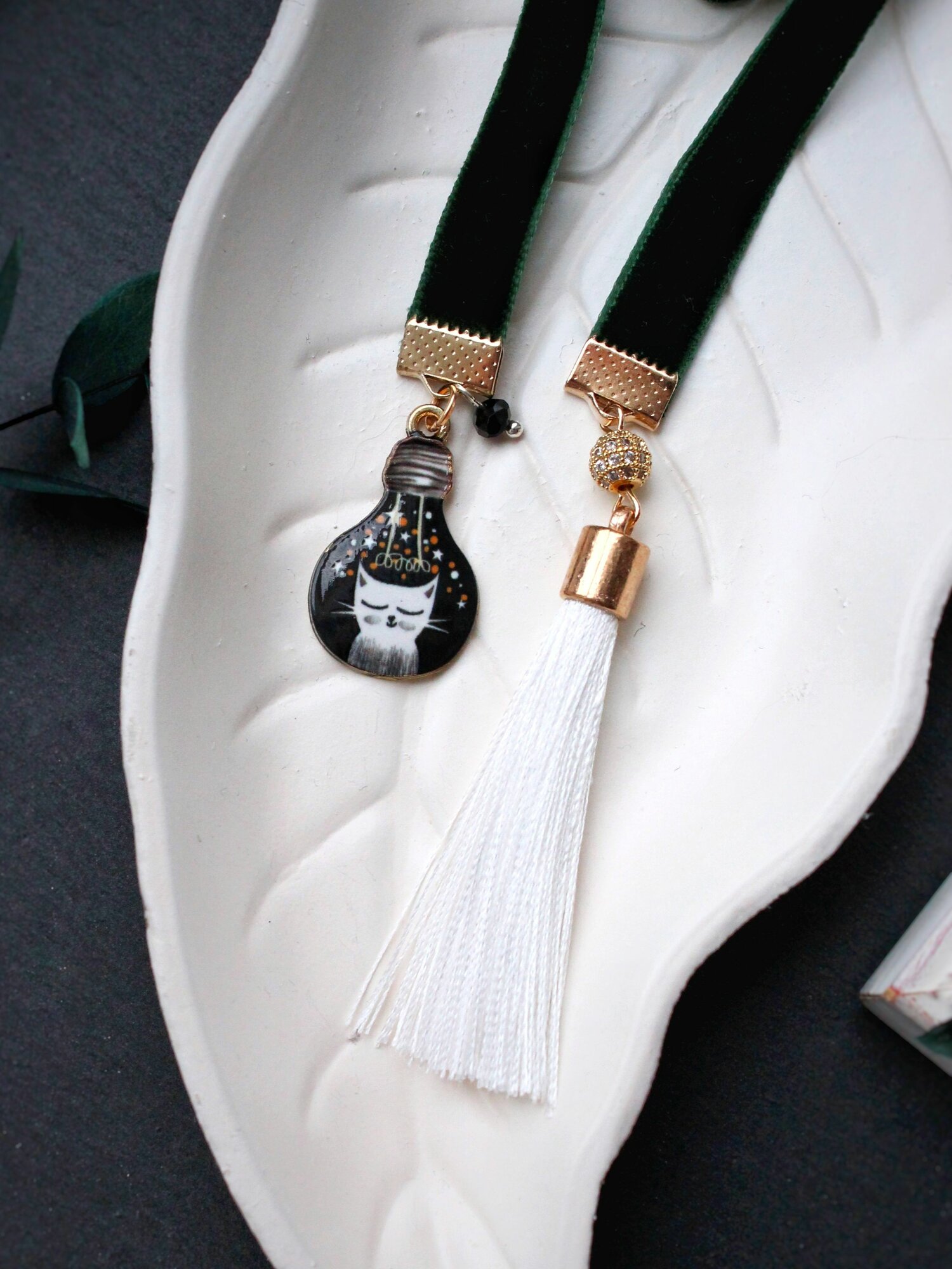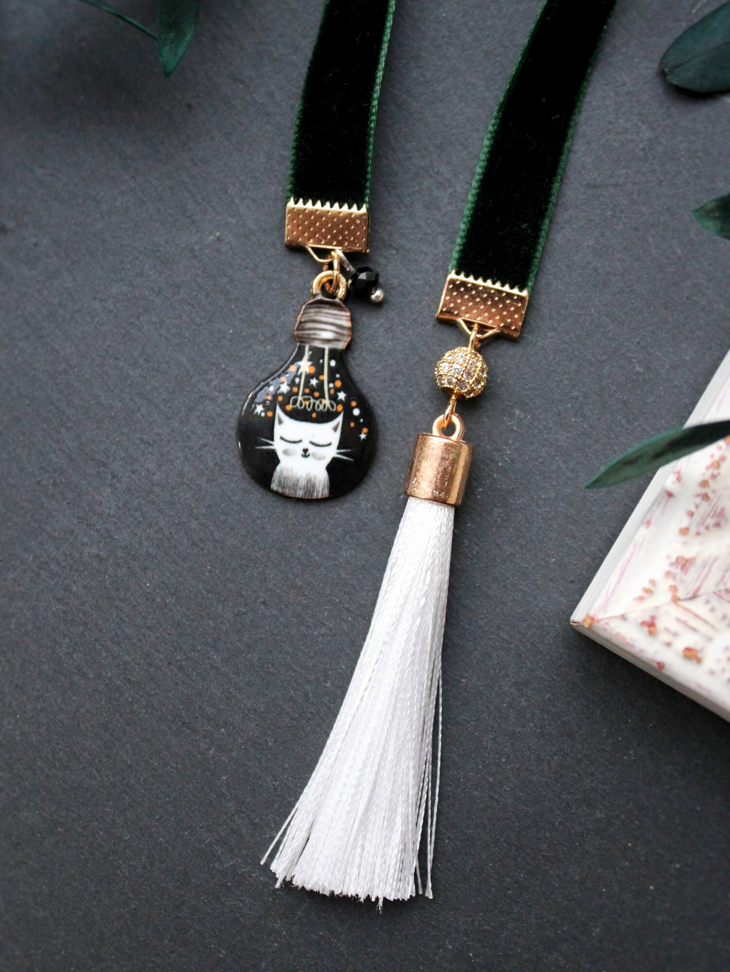 Закладка подарочная "Сирень", зеленая бархатная лента для книги, готовый подарок девушке подруге сестре жене