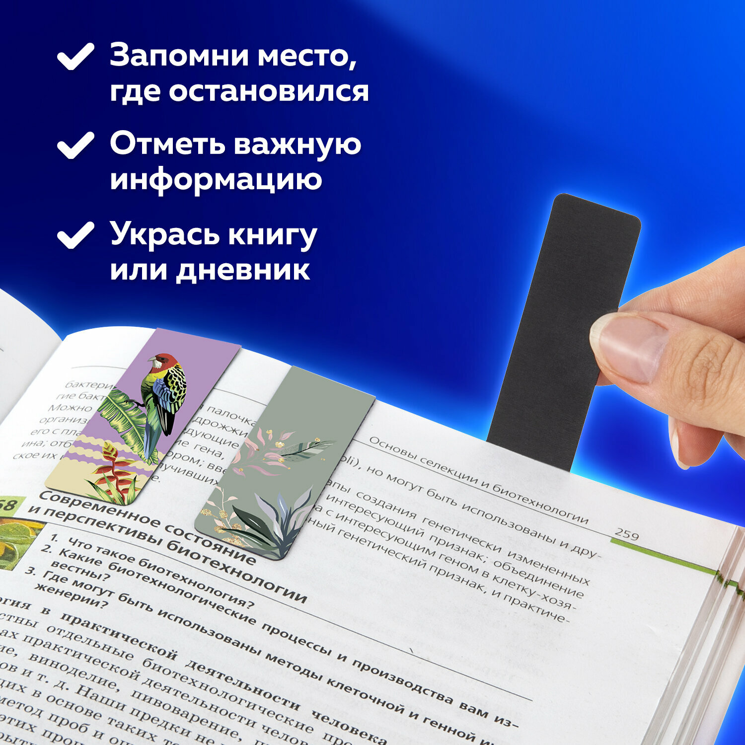 Отзывы на Закладки канцелярские магнитные для книг книжные в школу, для учебников, тетрадей, для ежедневника, Tropics, набор 12 штук, 60x20 мм, Brauberg, 113172