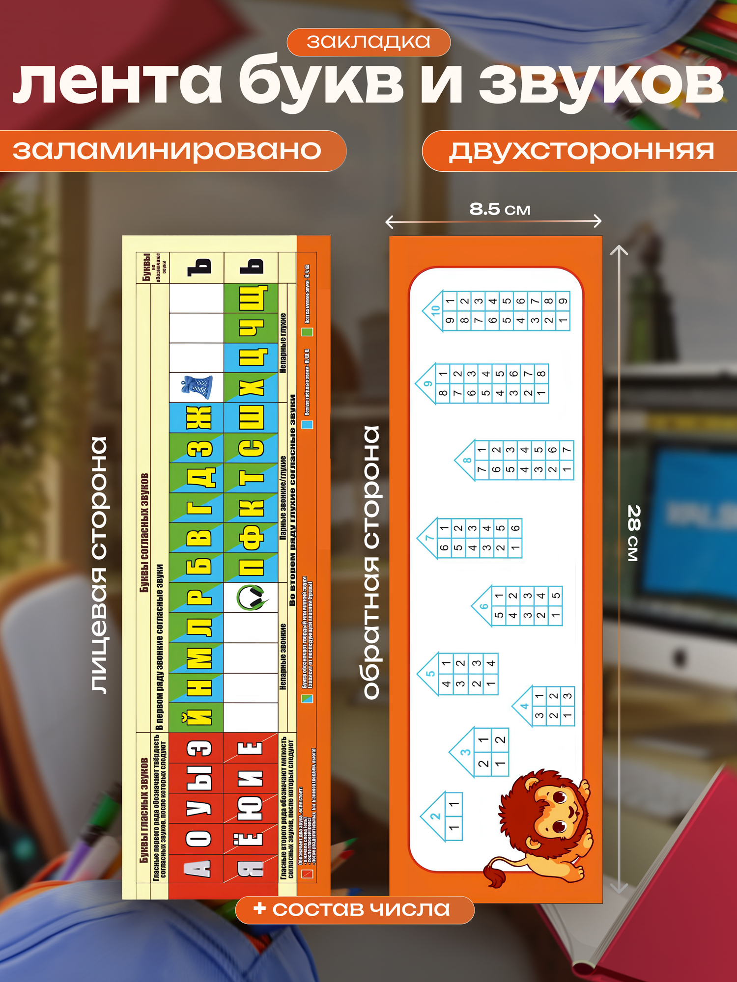 Отзывы на Закладка для книг шпаргалка Лента букв и звуков состав числа для первого класса 28 см