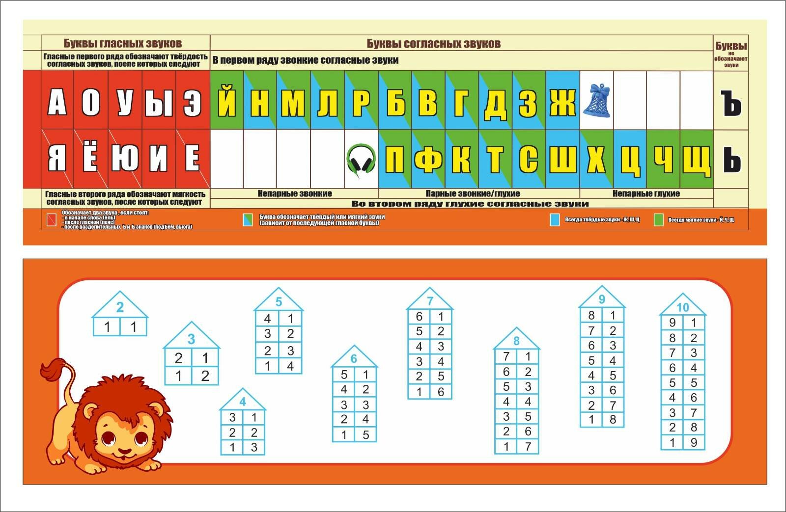 Закладка для книг шпаргалка Лента букв и звуков состав числа для первого класса 28 см информация: