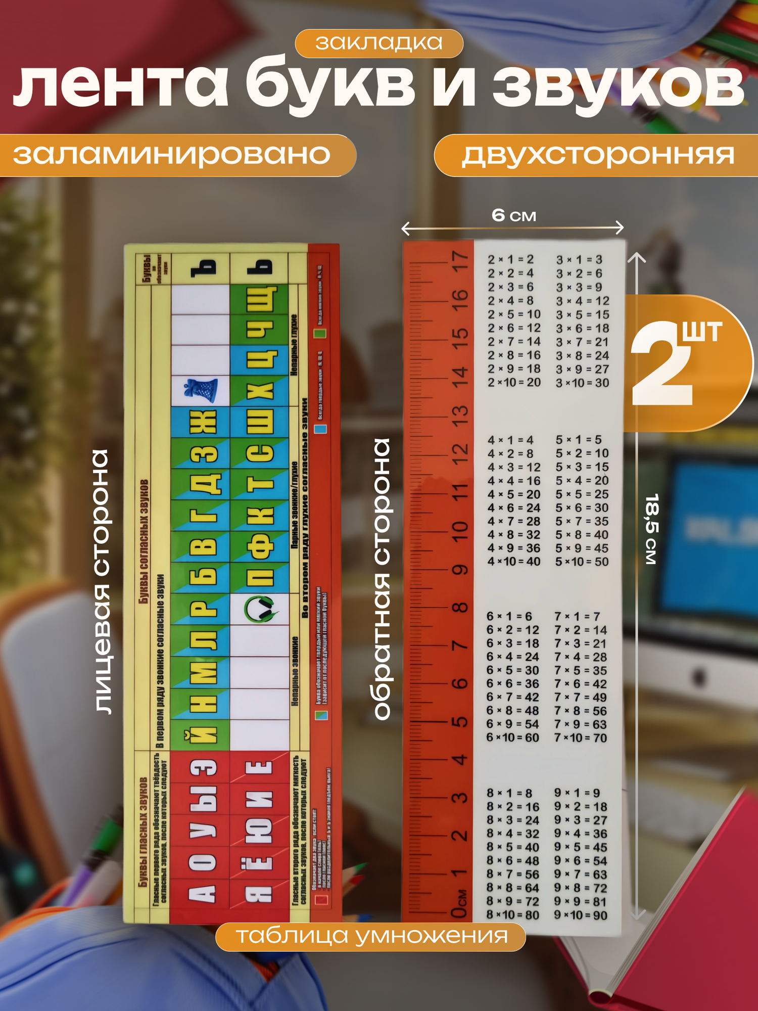 Закладка для книг шпаргалка таблица умножения с линейкой 18 см в наборе 2 шт информация: