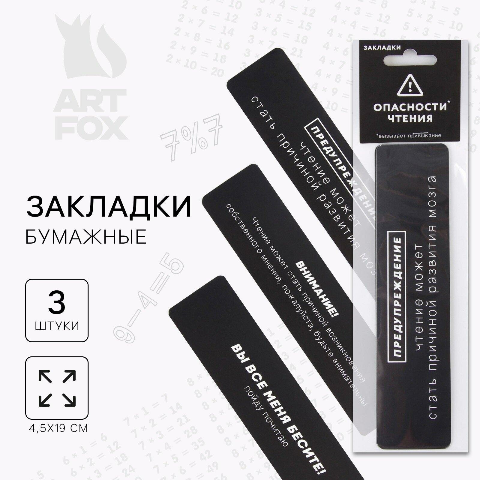 ArtFox Набор картонных закладок "Опасность чтения", в комплекте 3 шт. информация: