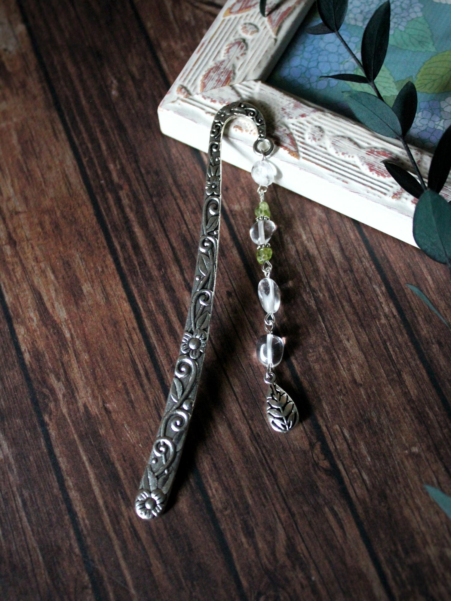 10 цен на Закладка "Тишина" с кристаллами кварца и перидотом (хризолитом), для книги ежедневника дневника, готовый подарок коллеге подруге маме сестре