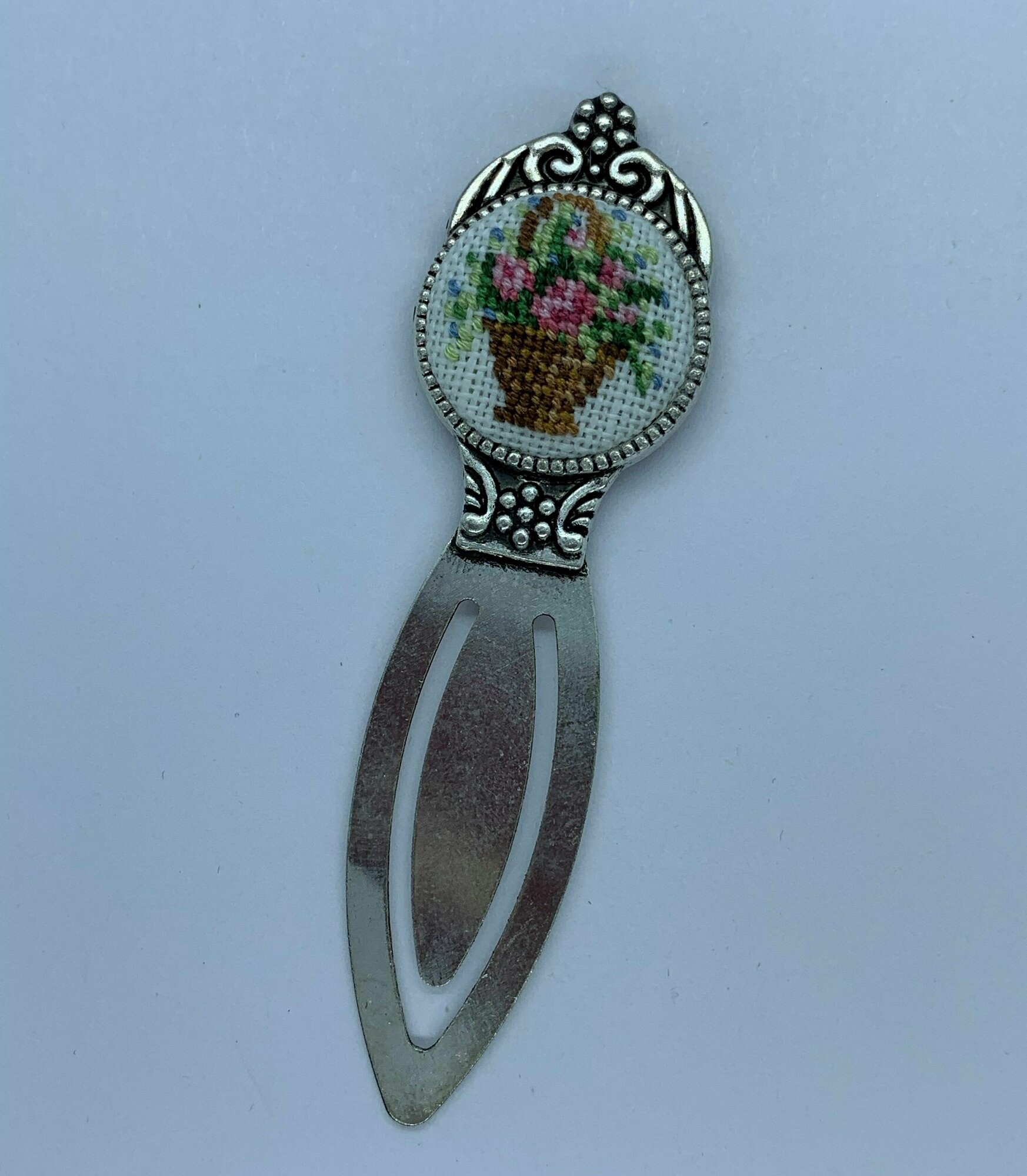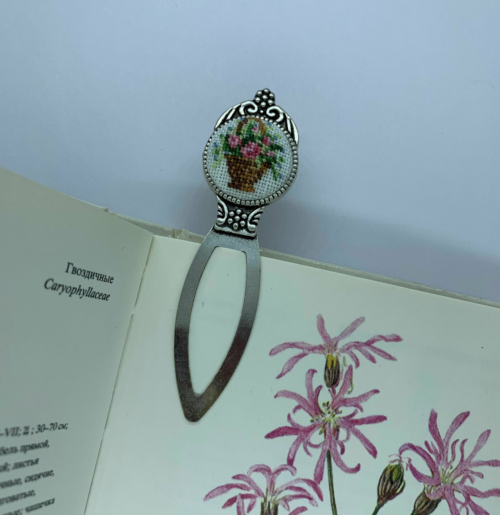 10 цен на Закладка для книги металлическая ручной работы, микровышивка, серебрян. оправа