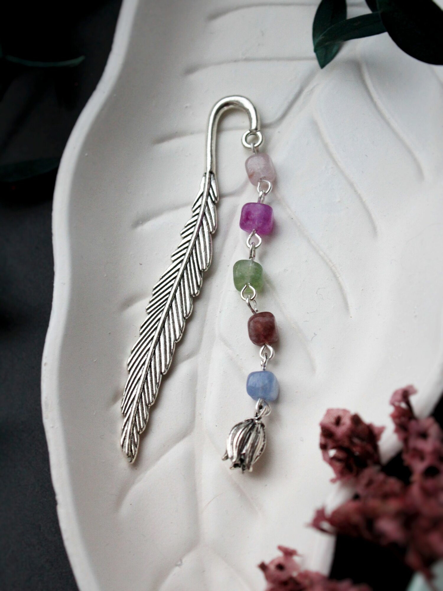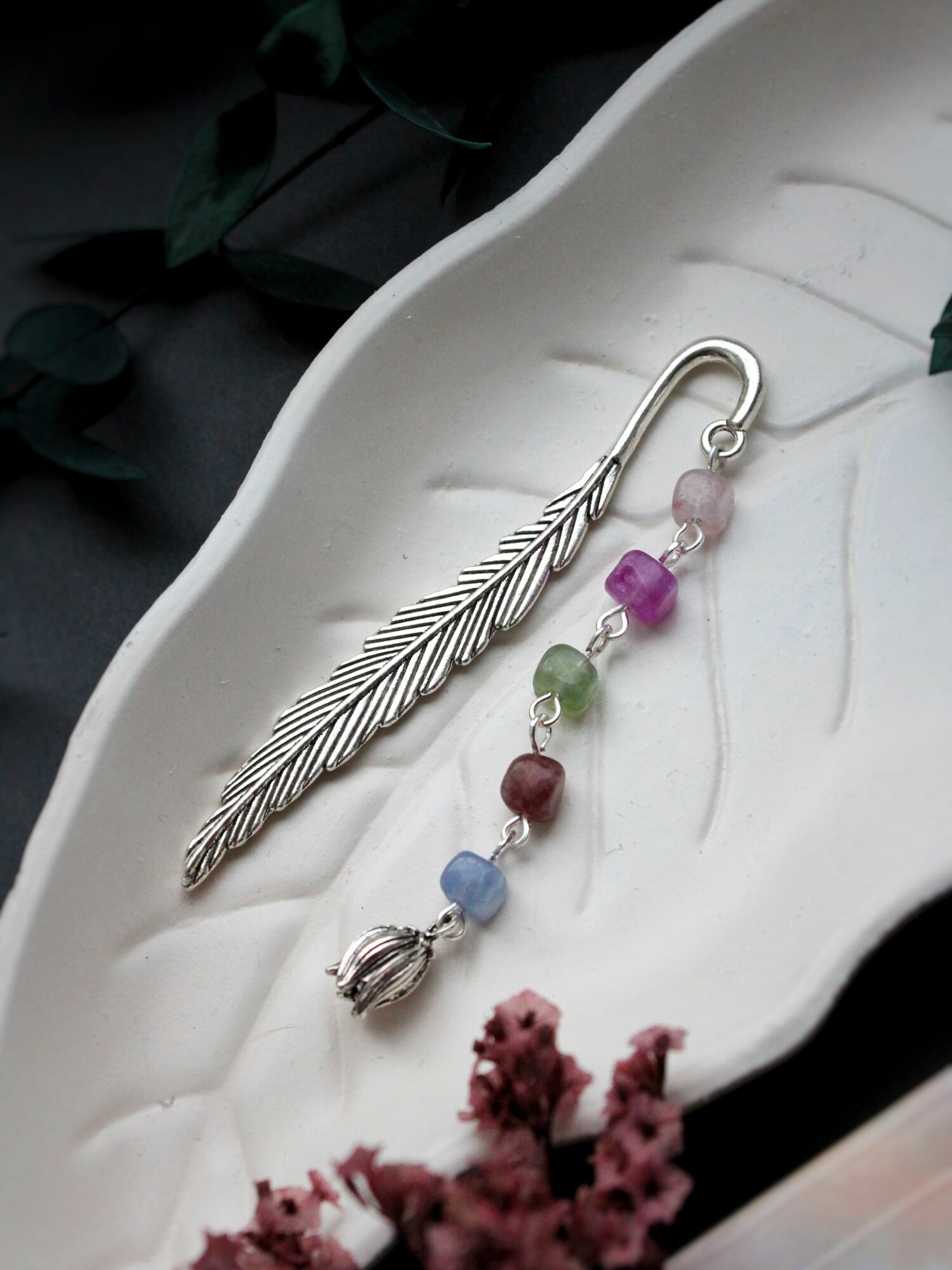 Закладка "Монпансье" /Перо/ с кварцем, для книги ежедневника дневника, натуральные минералы, готовый подарок информация: