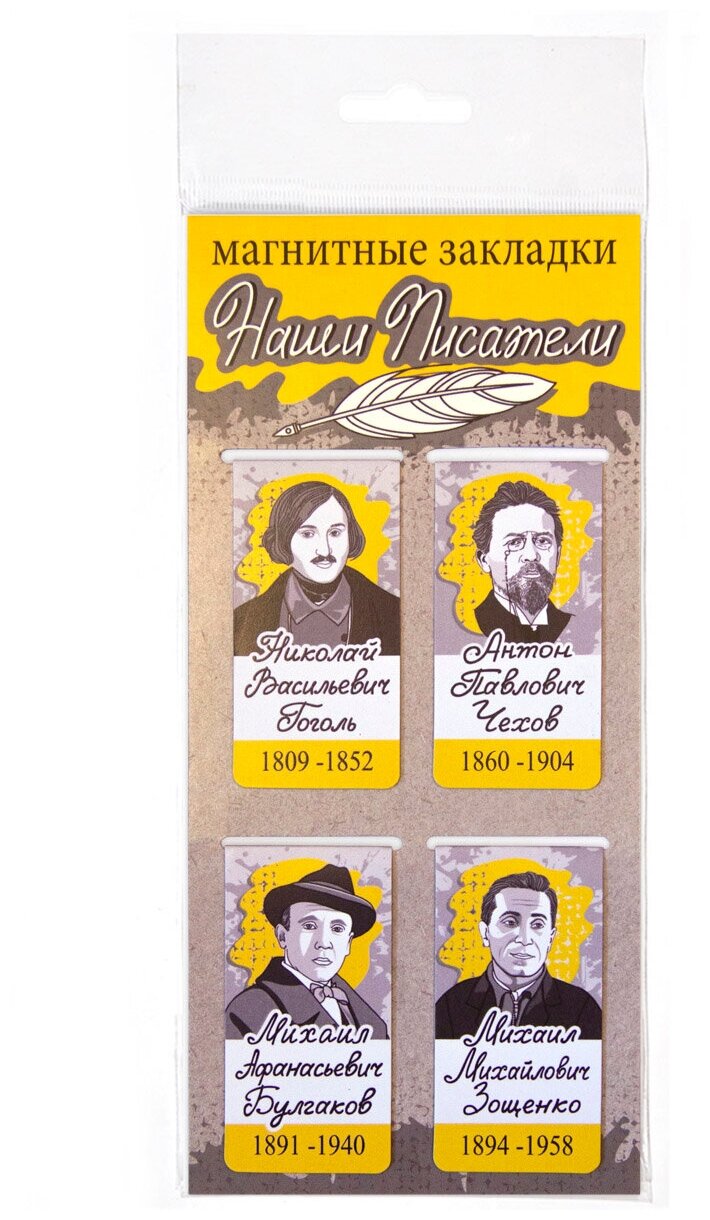 10 цен на Набор магнитных закладок "Наши писатели: Гоголь, Чехов, Булгаков, Зощенко" (35х70мм), закладка для книг