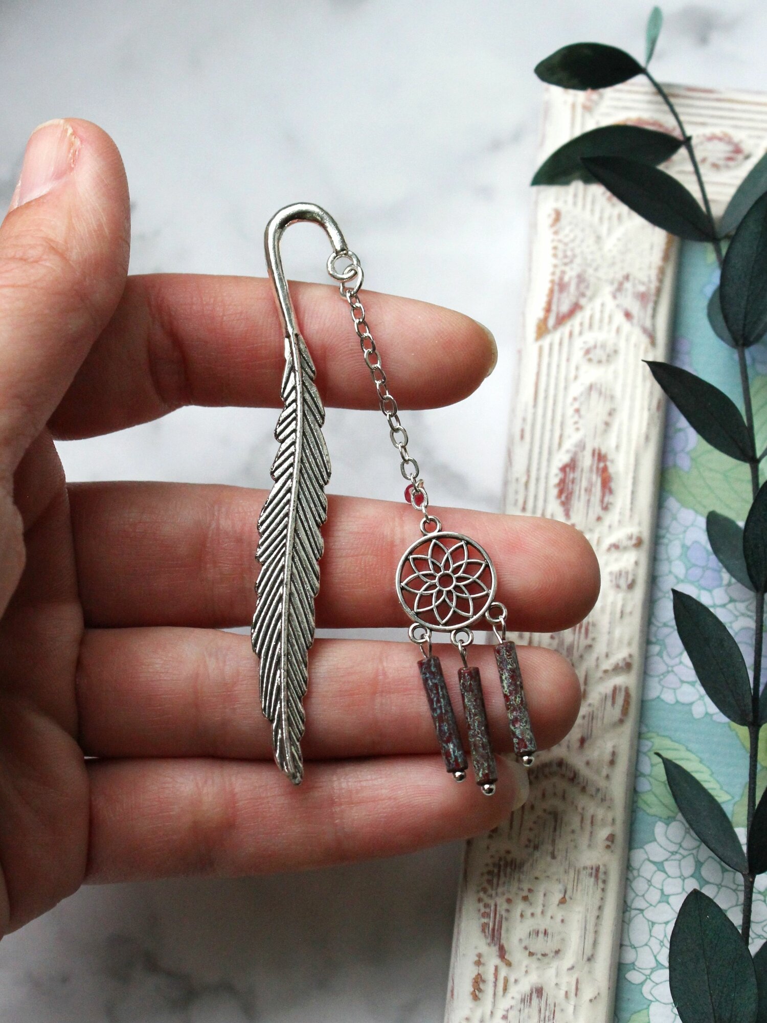 10 цен на Закладка-перо "Ловец снов" с чешским стеклом для книги ежедневника учебника, готовый подарок