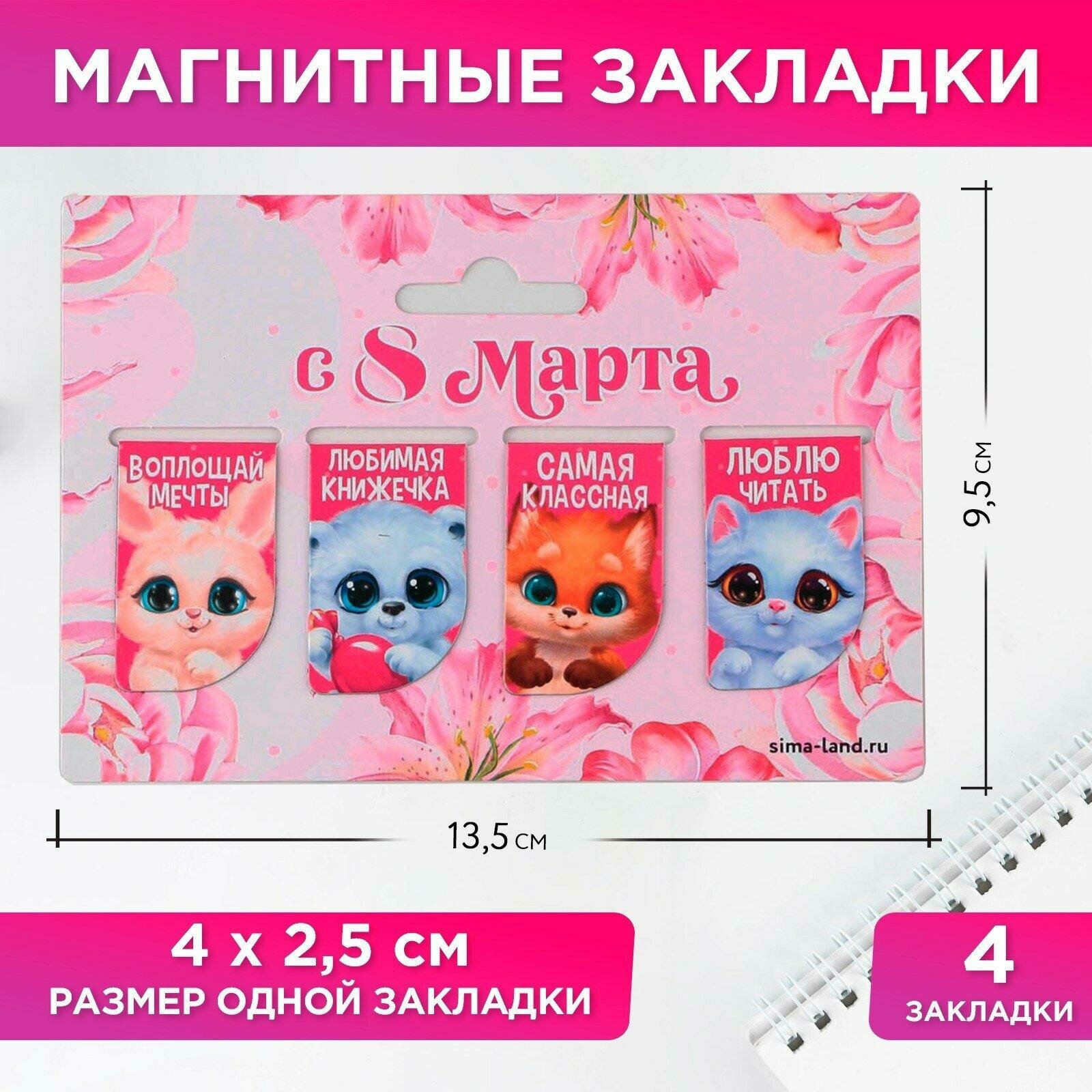 10 цен на ArtFox Закладки магнитные мини на подложке "Зверята", в комплекте 4 шт.