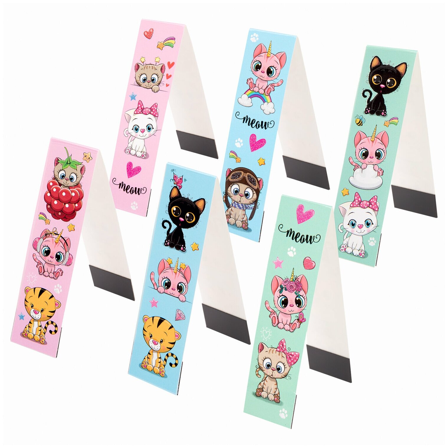 10 цен на Закладки для книг с магнитом MEOW CATS, набор 6 шт, блестки, 25x196 мм, юнландия, 113442