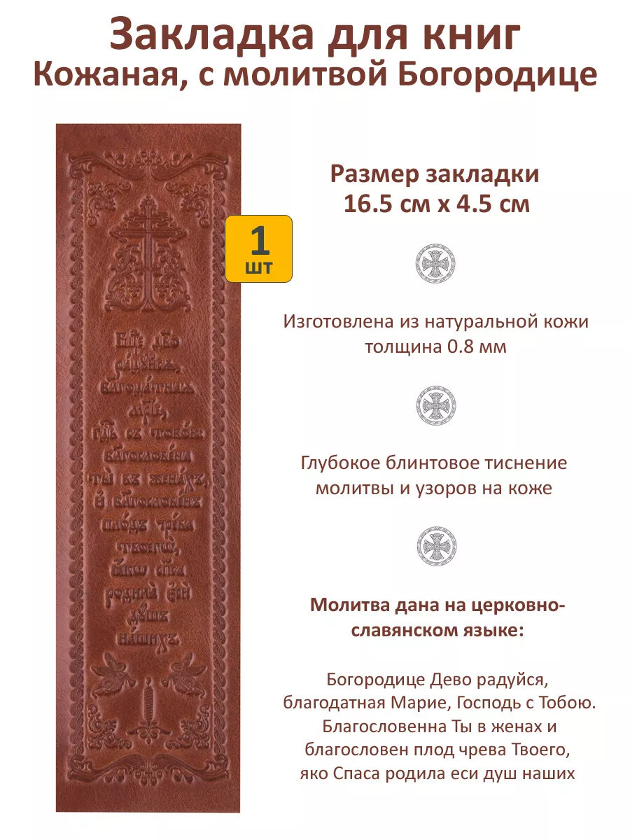 Отзывы на Закладка для книг кожаная, с молитвой Пресвятой Богородице, 16,5 х 4,5 см. Цвет коричневый.